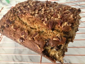 Starting my morning off with a cup of one of my favorite teas, Victorian London Fog from Harney & Sons. It’s a wonderful tea made up of black tea, oolong tea, bergamot oil, lavender and vanilla flavor. With a little whole milk (or cream if I have it on hand) and a teaspoon of sugar, it’s a lovely way to start the day. Of course, it’s even better today with a slice of zucchini bread I made yesterday. I used this recipe, from Sally’s Baking Recipes. I was a little short on the shredded zucchini, so I added a little grated carrot to make up the difference. I also added Callebaut semi sweet chocolate chips, which I purchased at one of my favorite local shops, Mary’s Kitchen Port (besides offering daily house-made soups, sandwiches and salads, they have a drool worthy selection of kitchen wares), and sprinkled a generous amount of pecan pieces on the top, before letting the batter rest for 10 minutes (so the leavening could do its thing). Then it went into the oven at 425°F for 8 minutes, before dropping temp to 350°F for another 50 minutes. One of the best loaves of zucchini bread I’ve ever made, I was a happy camper.