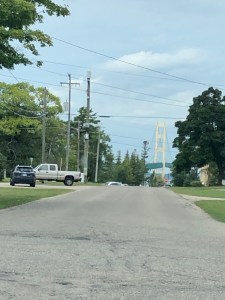 Then we were all loaded back in the car, and on the road again. However, we made a couple more stops. The first, in Mackinaw City, where we stopped to stretch our legs in a park under the “Mighty” Mackinaw Bridge, right on Lake Huron (I think it is Lake Huron on the right side of the bridge), it is always a great place for a little walk. Then we drove on to Charlevoix, where we stopped to have dinner at “My Grandmother’s Table,” a wonderful little place right downtown. Between us, we ordered Thai Orange Chicken, Polish sausage and Pierogi, and homemade tomato basil soup with a fabulous grilled cheese. A Lavender London Fog tea was a special treat (check out this recipe from the Gimme Some Oven blog, though you can use lavender syrup instead of dried lavender, as they did at the restaurant). After that, we focused on completing the homestretch of our return. It was one of the best road trip paloozas to date. Wonder where we’ll go next year!