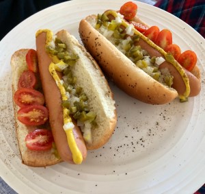 Two days ago, we found poppyseed hot dog buns at the grocery store, a rare find, and instantly had a craving for Chicago dogs. While we didn’t have sport peppers nor the neon green sweet relish typically used for them, we had enough to make a go of it. Even the celery salt, which I’d only added to the spice drawer within the last two weeks, what luck. The tomatoes were fresh from our garden and I chopped up some cornichon pickles in lieu of the long dill pickle spear. Hubby and I were both really happy with these, they hit the spot.